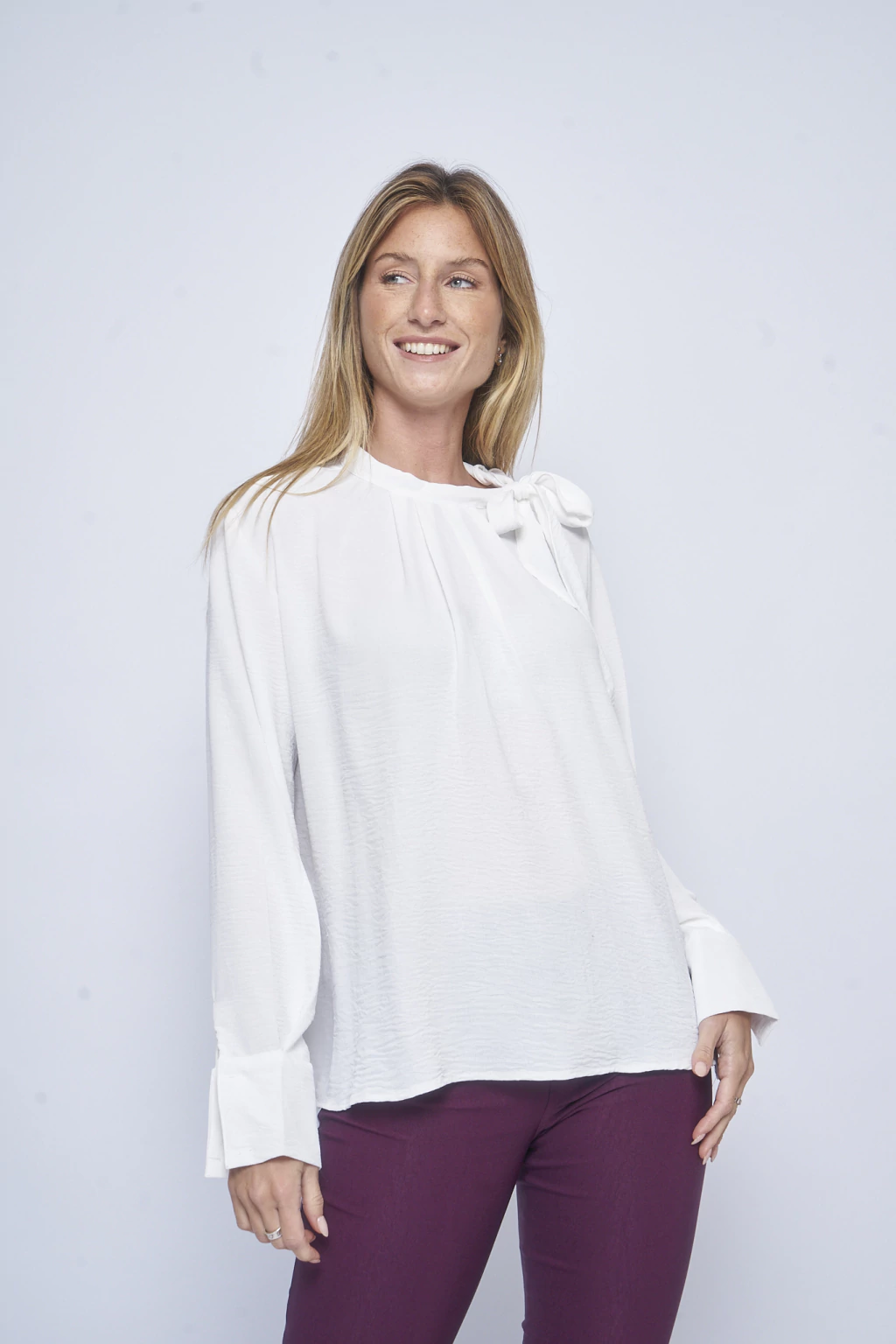 La Blusa Cey Nudo destaca por su diseño sofisticado con tablas delicadas que aportan un toque de elegancia. Su cuello con tiras para hacer moño permite un ajuste personalizado, ideal para un look femenino y refinado. El puño ancho realza la silueta y aporta comodidad, mientras que la confección cuidada garantiza una prenda de alta calidad. Perfecta para ocasiones especiales o para elevar tu estilo diario con distinción.