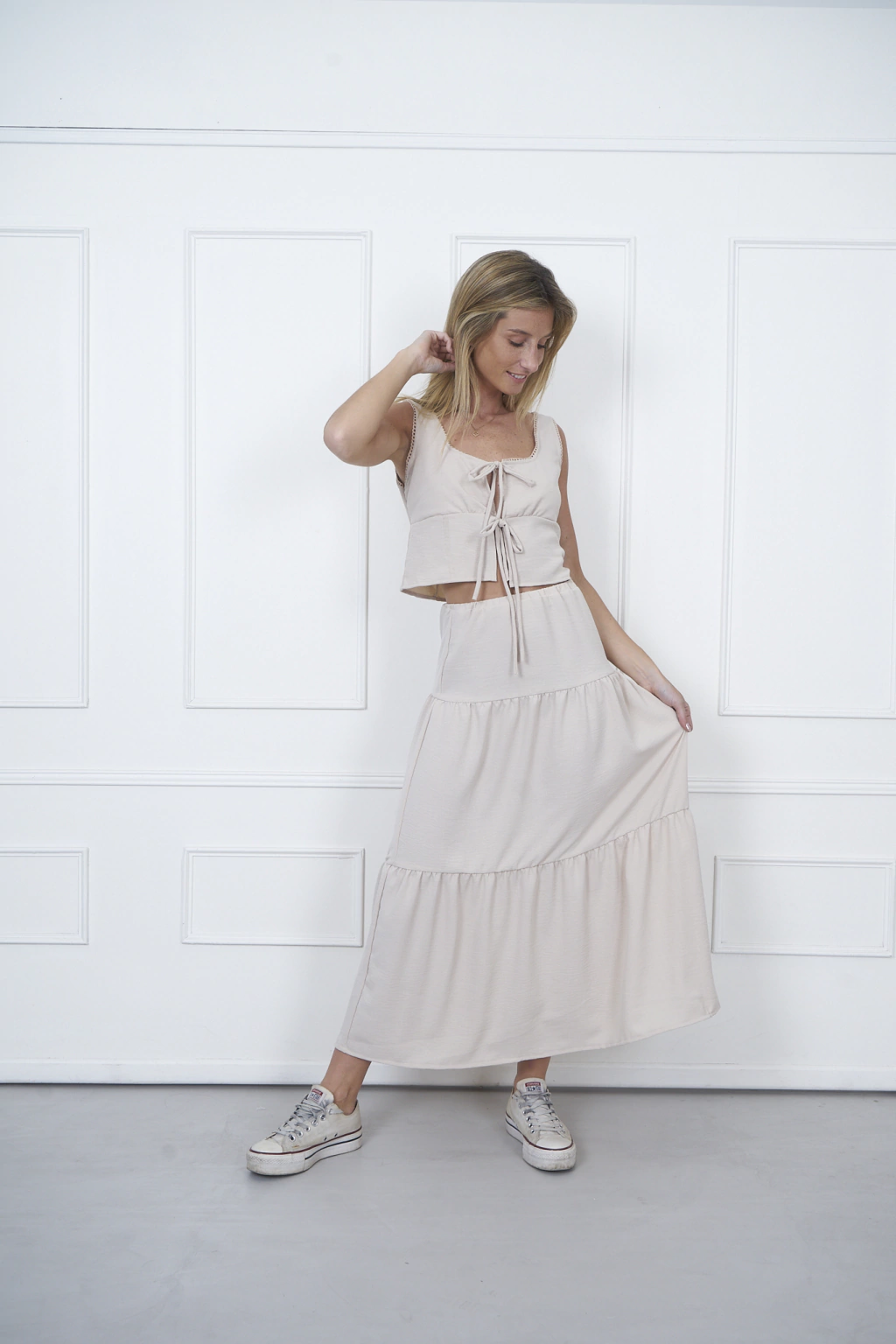 Descubrí la Blusa Musculosa Cloquet Cey, una prenda imprescindible en tu guardarropa. Confeccionada en un tejido exclusivo de Cey, esta blusa presenta detalles de vainilla y elegantes tiras para atar, brindando un toque sofisticado a cualquier look.