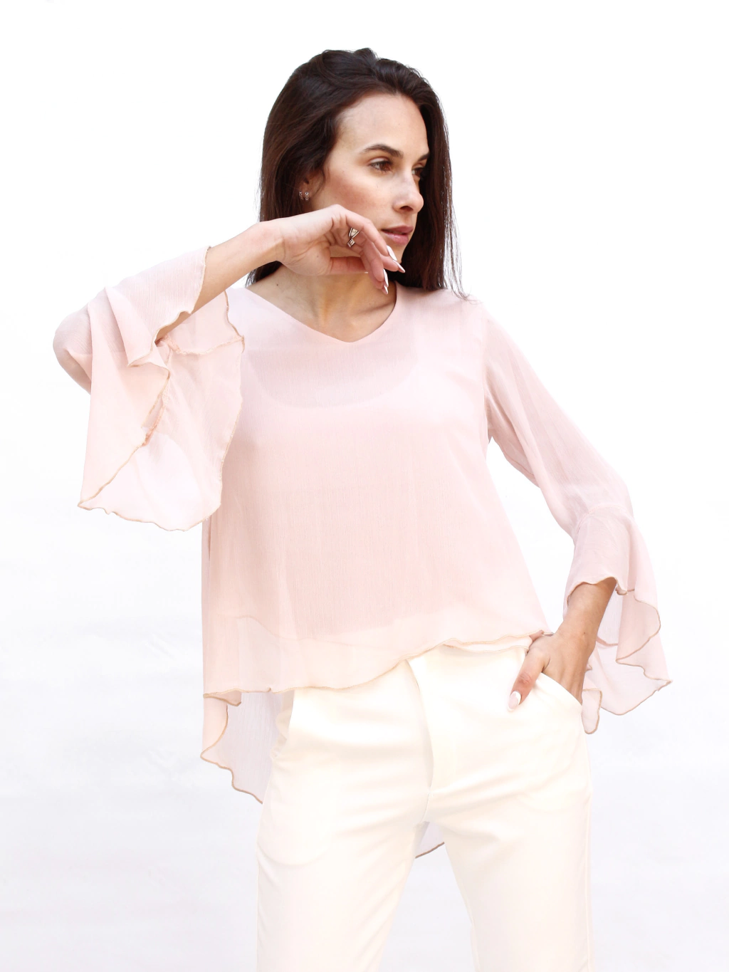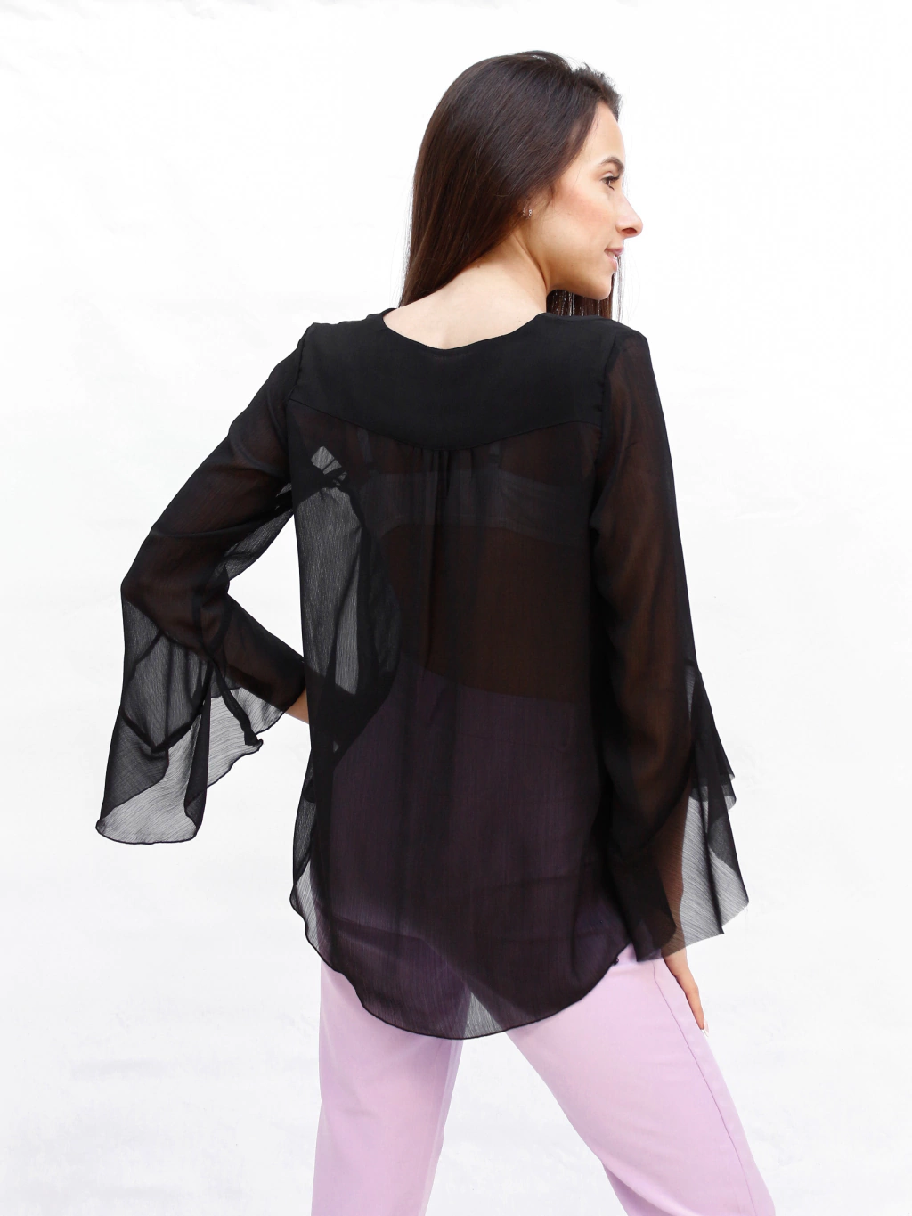 Blusa En Bambula crep. Suelta y ligera. Viene en 3 talles. El modelo es a la cintura y puños bien anchos.
