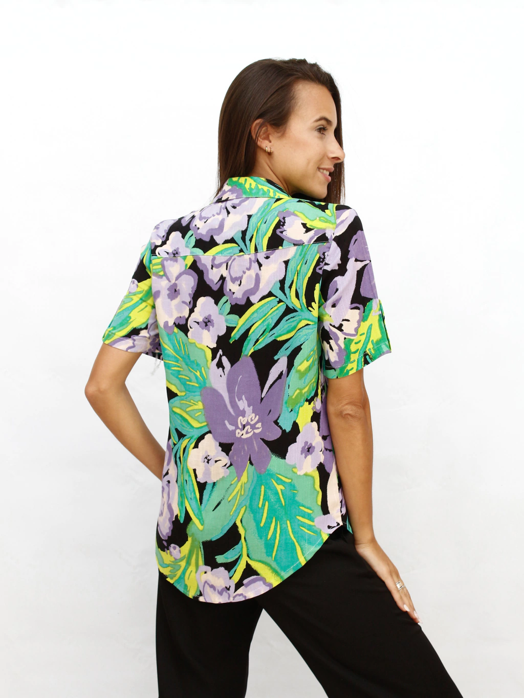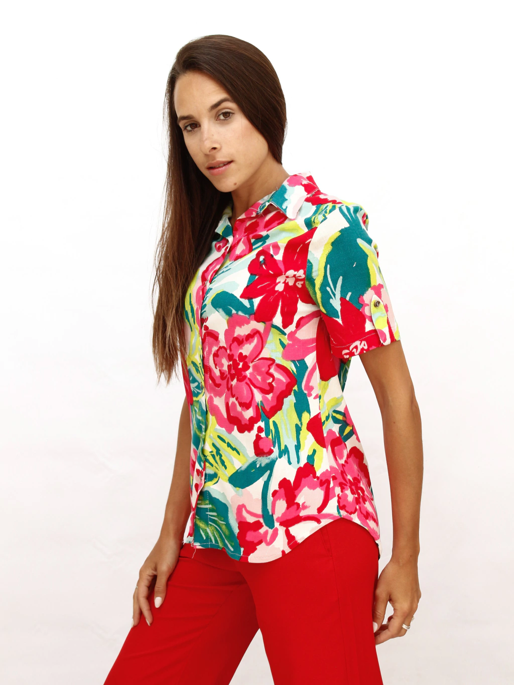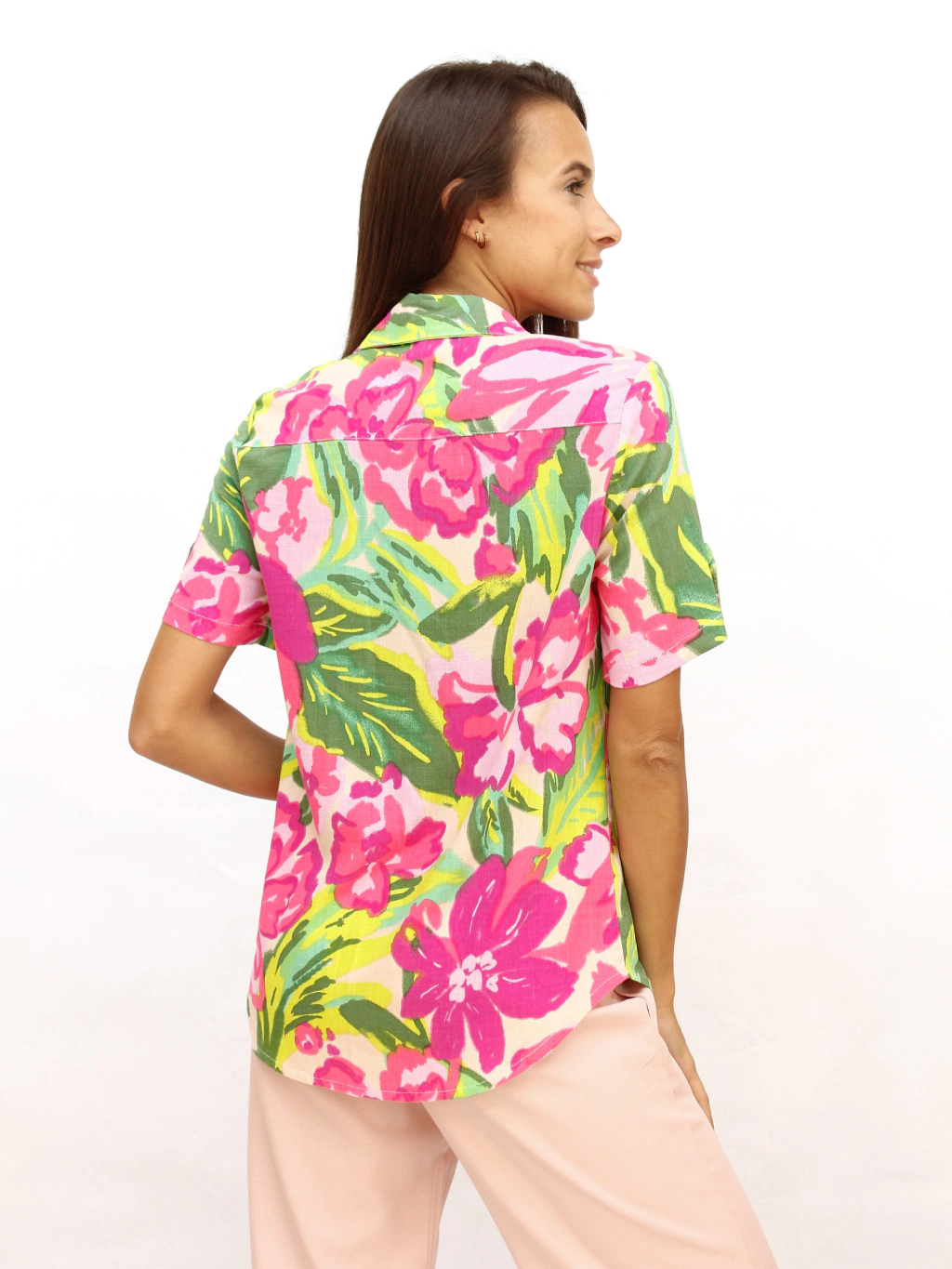 Camisa lino estampada, idela verano playa. Lino de buena caida, modelo suelto.