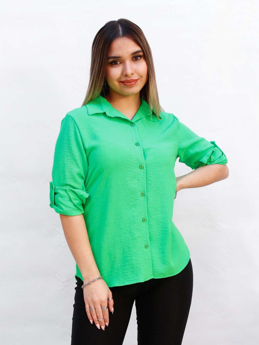 Camisa Brillosa Tela cloquet. Articulo bien casual, facil de combinar