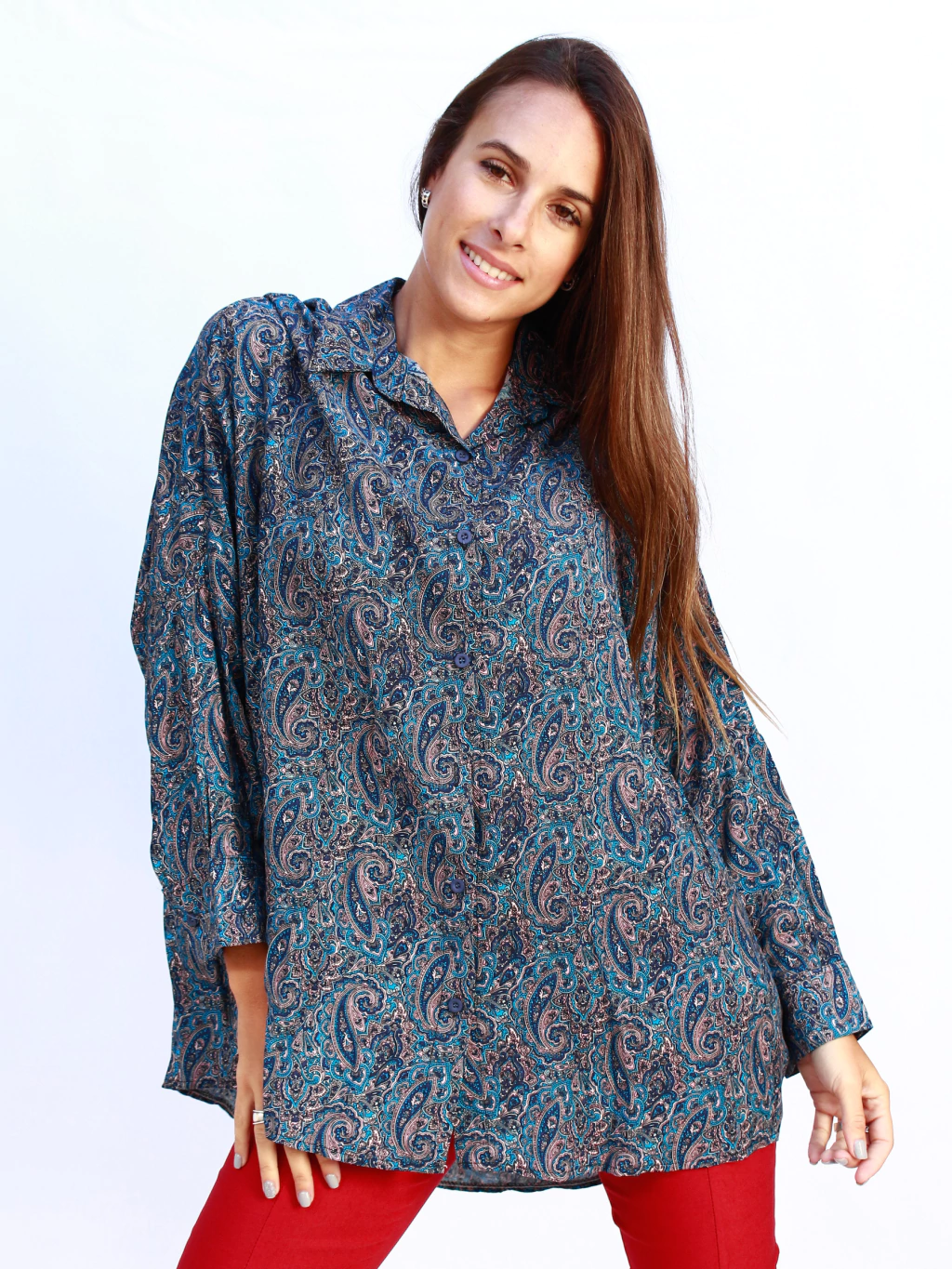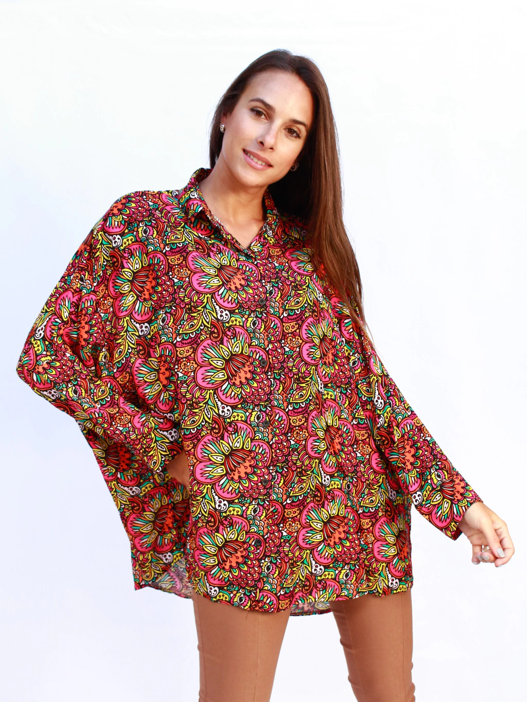 De nuesta clasica oversize, talle unico hasta un 135 de busto. Al ser bien ancha, cae bien a todas. Tambien se puede usar abierta tipo kimono