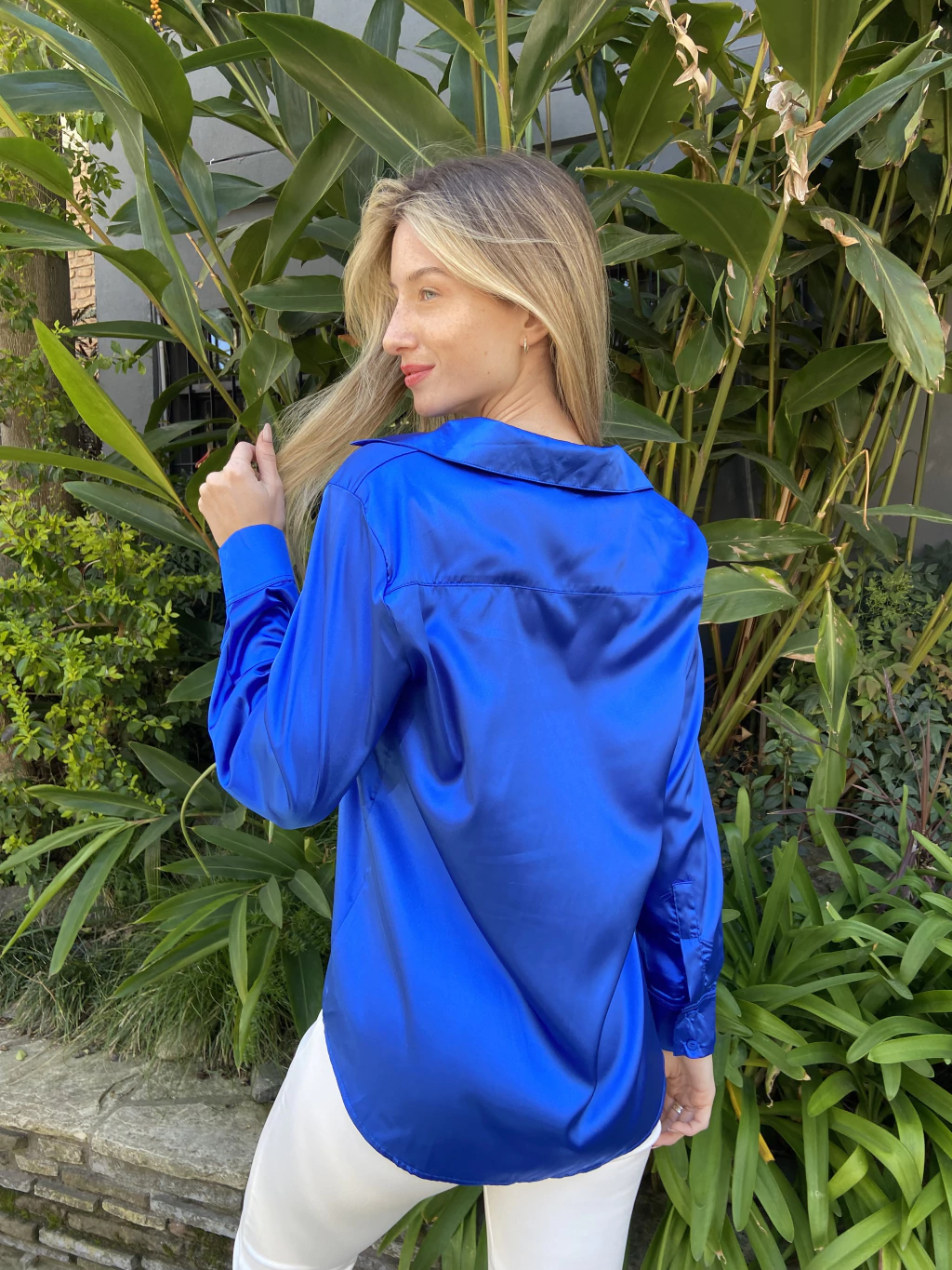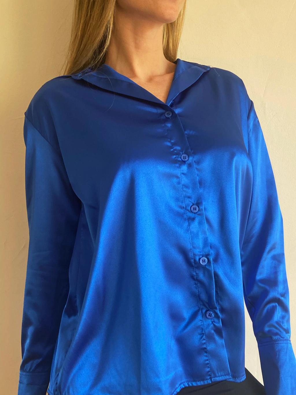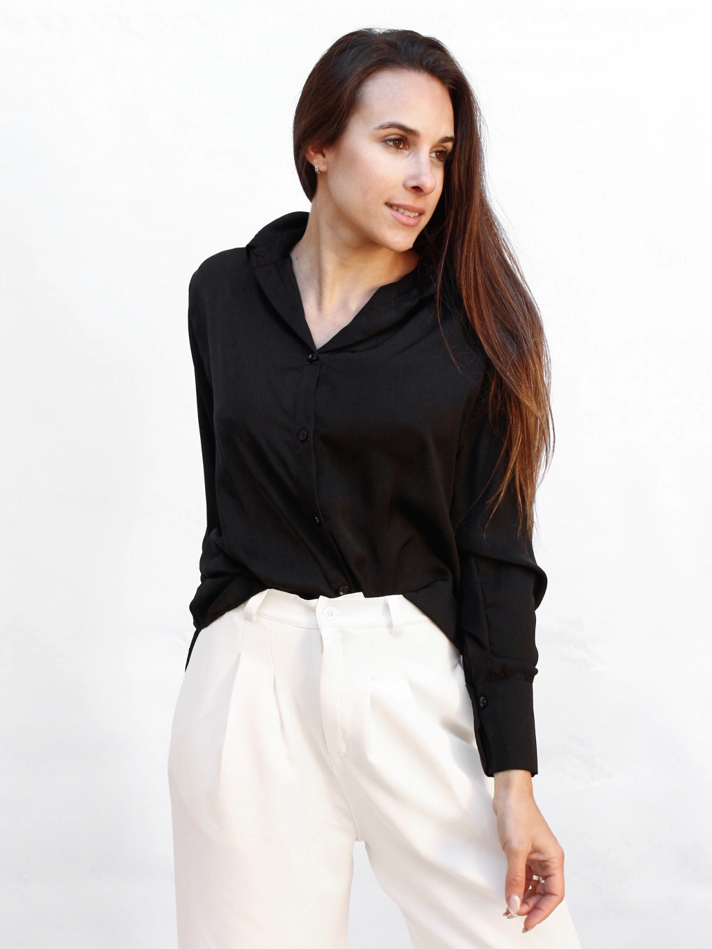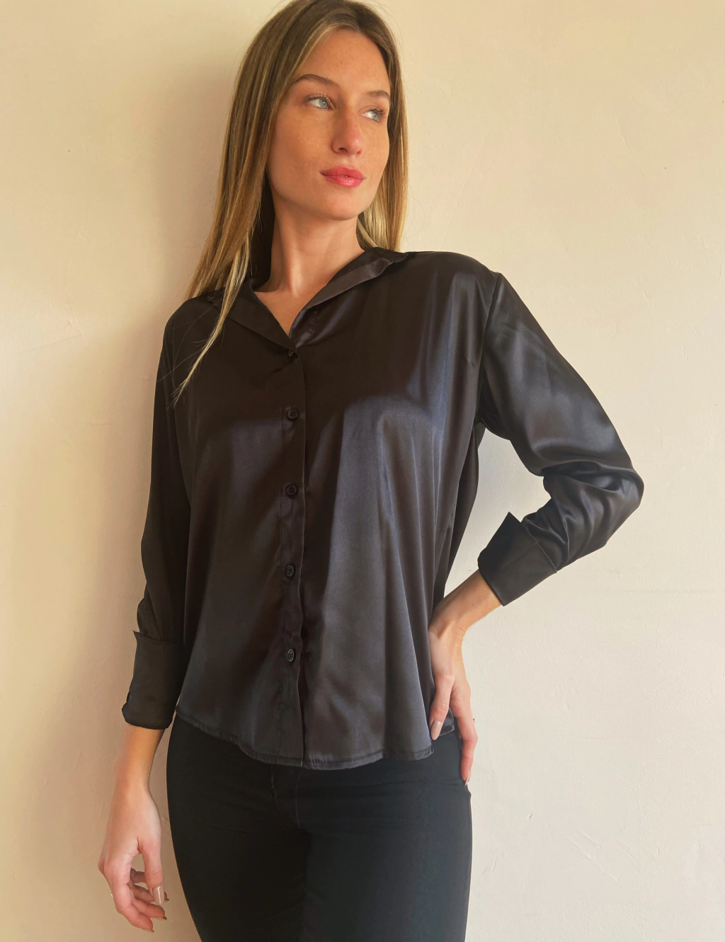 Camisa Razo Suelto. Es un modelo suelto a la cadera, bien ancho de hombros. Se puede escote tipo chomba en el cuello y los botones en el puño