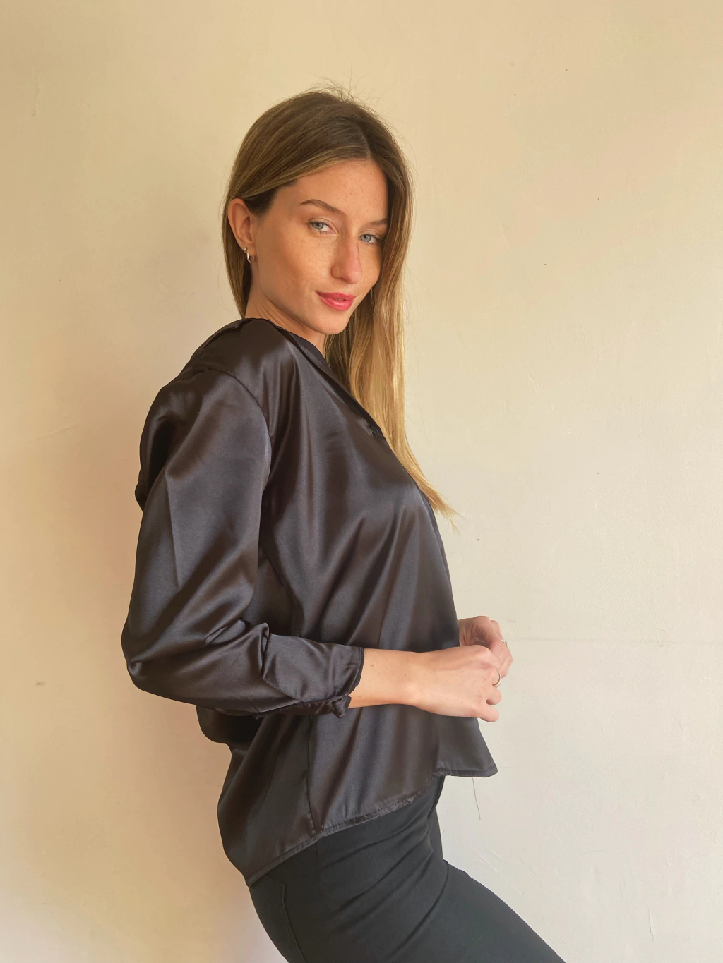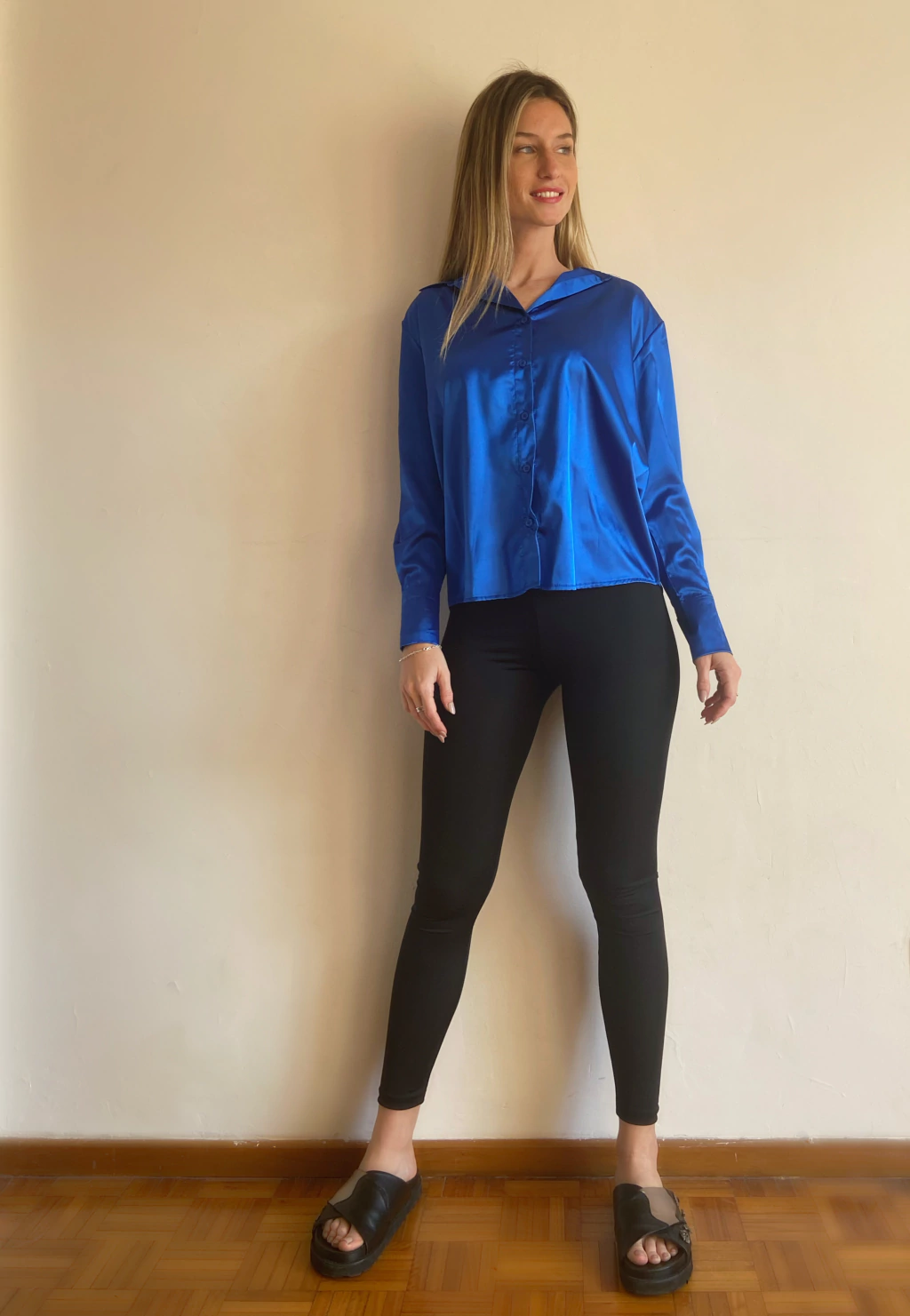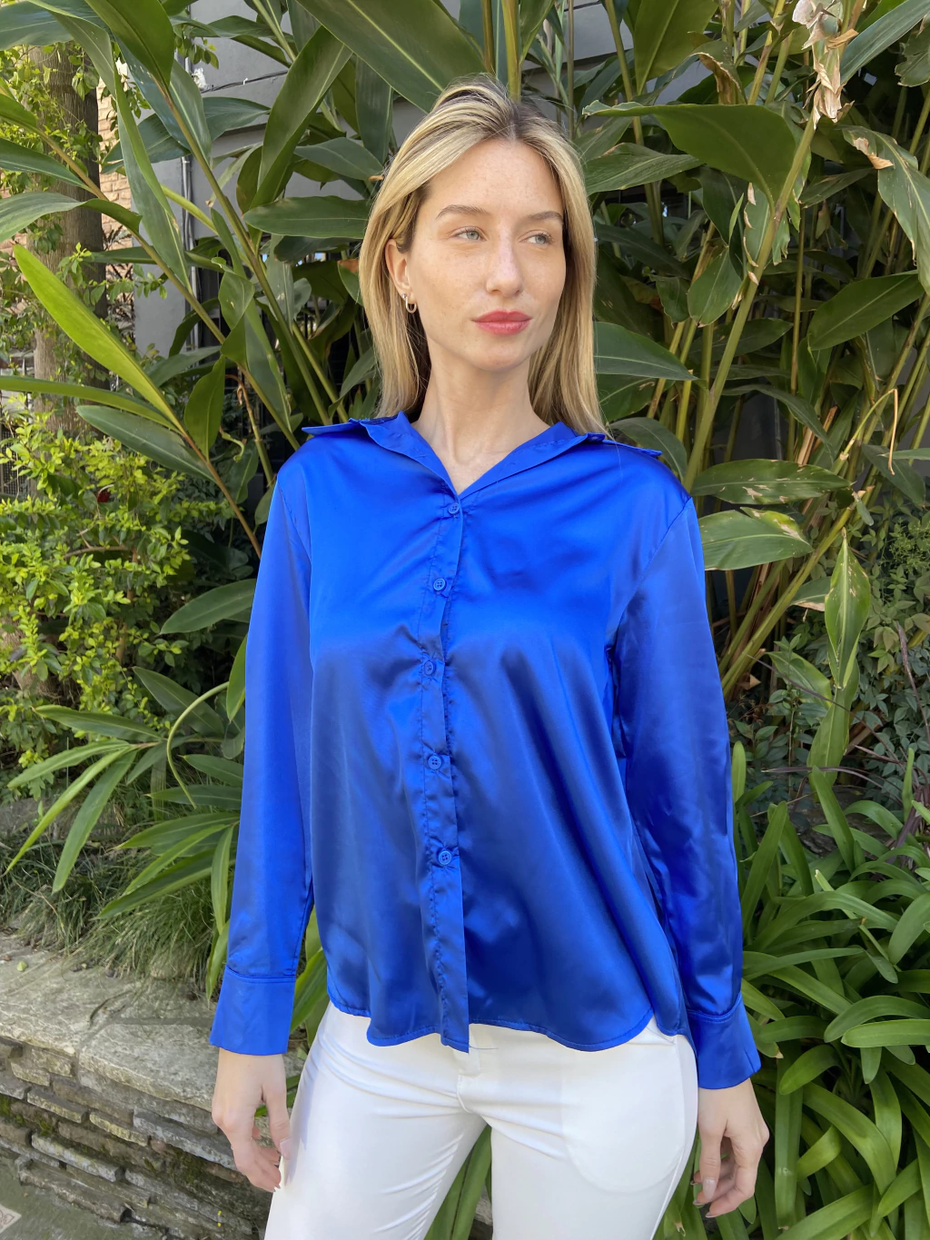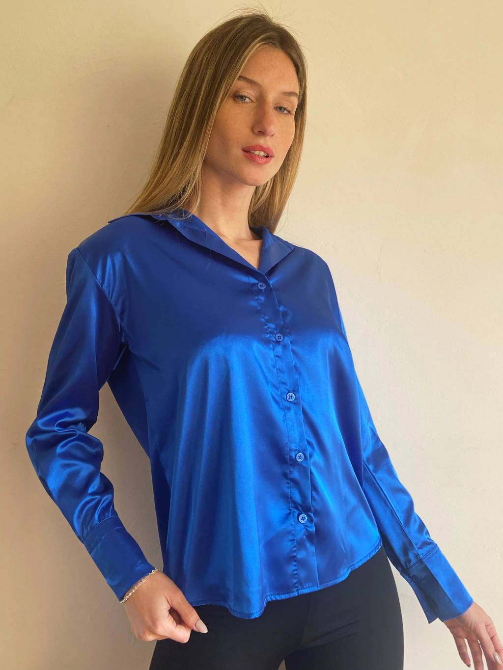 Camisa Razo Suelto. Es un modelo suelto a la cadera, bien ancho de hombros. Se puede escote tipo chomba en el cuello y los botones en el puño