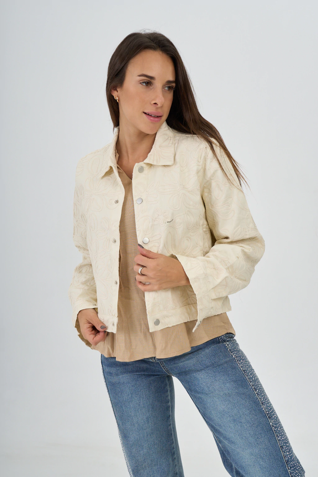 Descubrí la Campera Gabardina Bordada, una prenda que combina elegancia y delicadeza en cada detalle. Su bordado al hilo con forma de flores aporta un toque único y sofisticado, ideal para realzar tu estilo en cualquier ocasión. La gabardina, con un corte impecable, ofrece comodidad y versatilidad para usarla tanto de día como de noche. Un diseño pensado para quienes buscan distinción y calidad en cada prenda.
