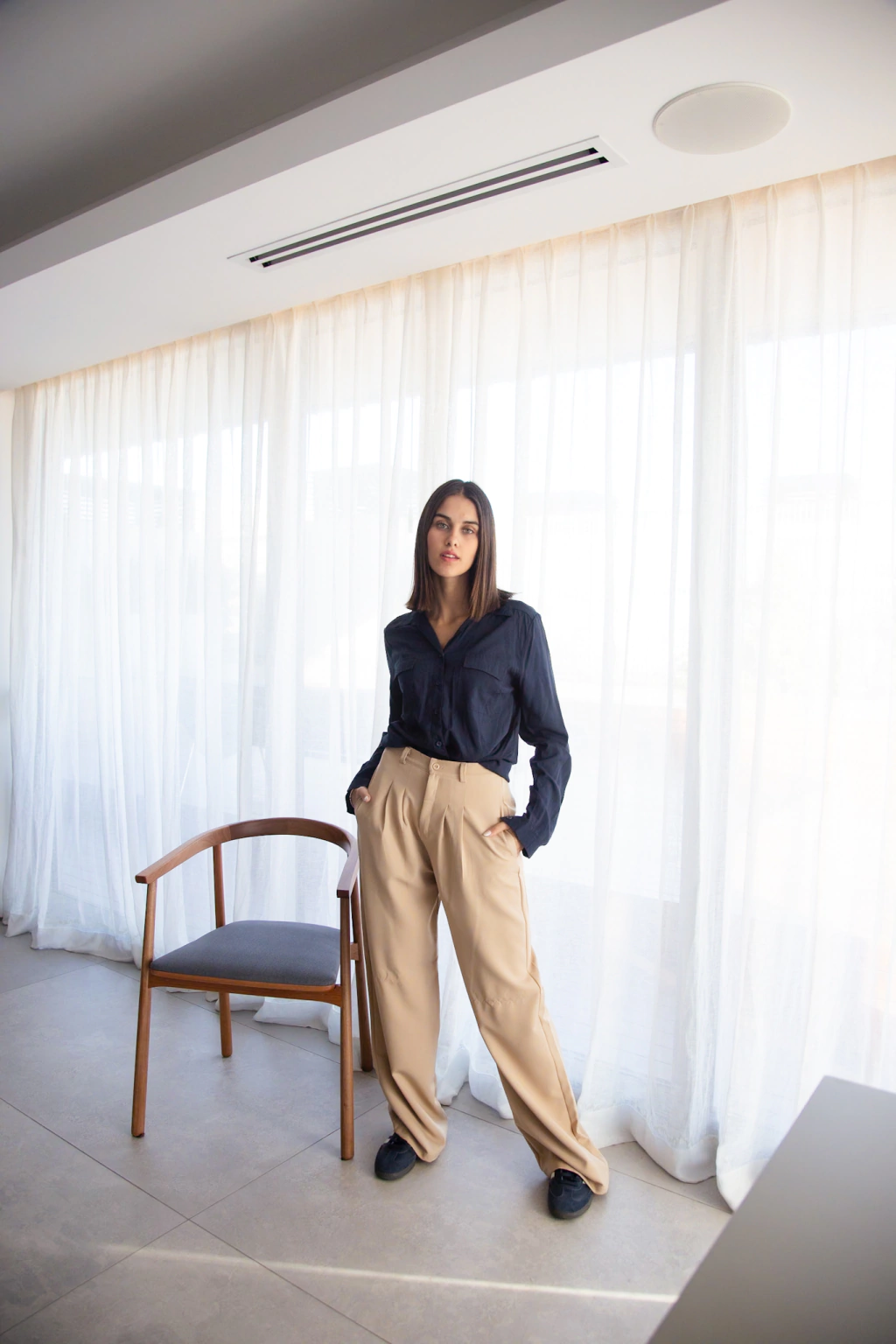 Pantalon Crep Sastrero modelo ancho, Sigue la linea de todos nuestros modelos sastreros.