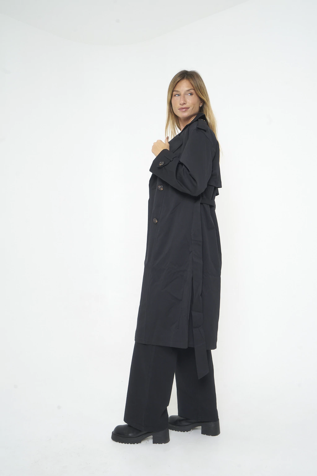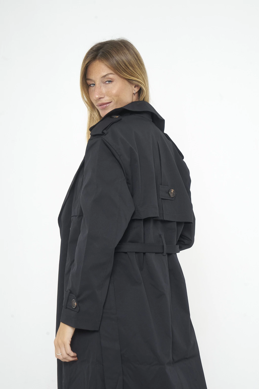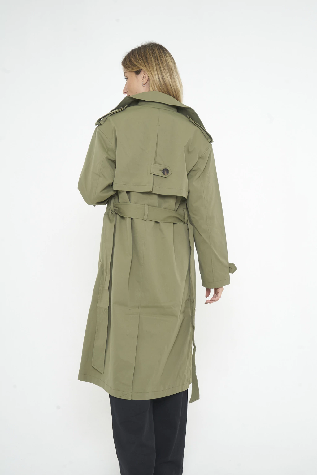 Su diseño incluye charreters que añaden un toque distintivo, y una capa en la espalda con botón que realza su sofisticación. Confeccionado en tela gabardina con poliéster, este piloto proporciona un acabado de alta calidad, aunque no es impermeable, lo que lo hace ideal para días frescos y soleados.